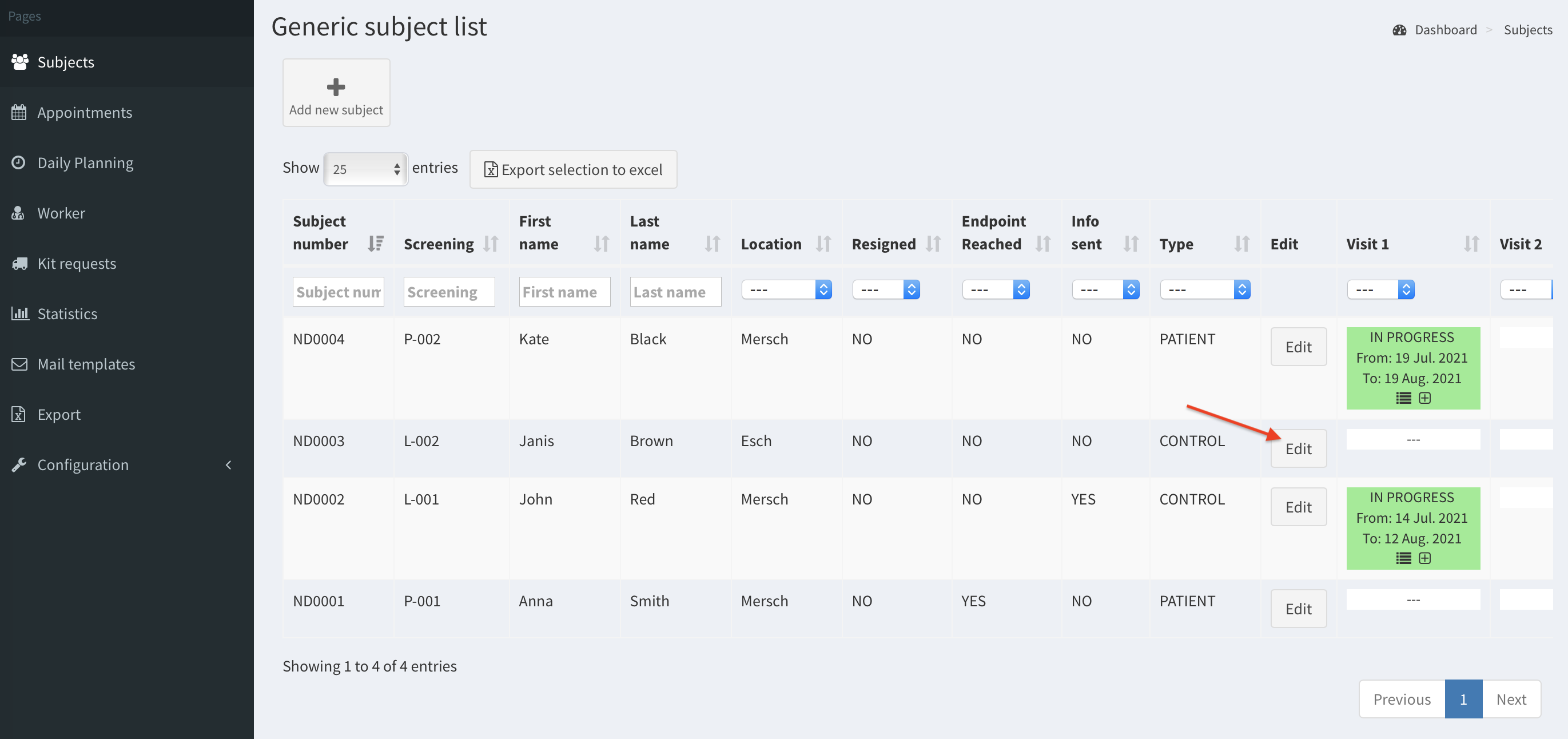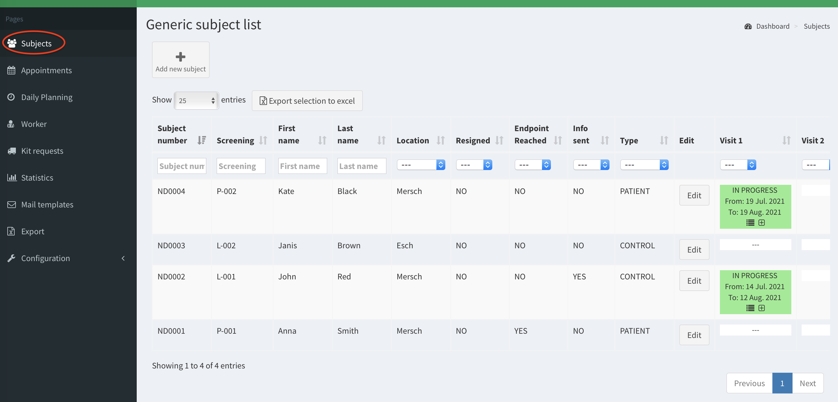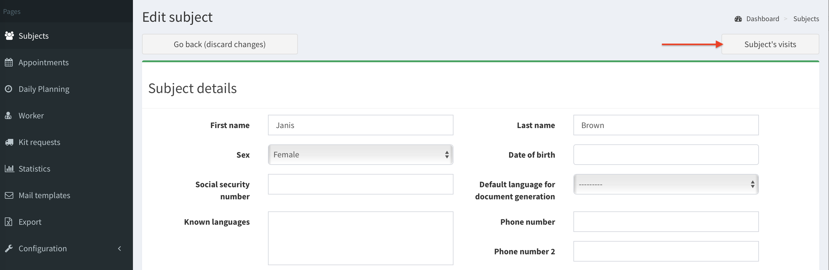 - This subject does not have any visits yet. Before we add an appointment we need to create a visit. Click Add visit button.