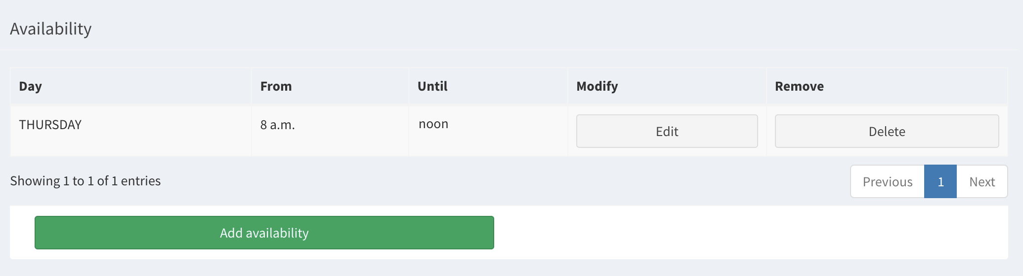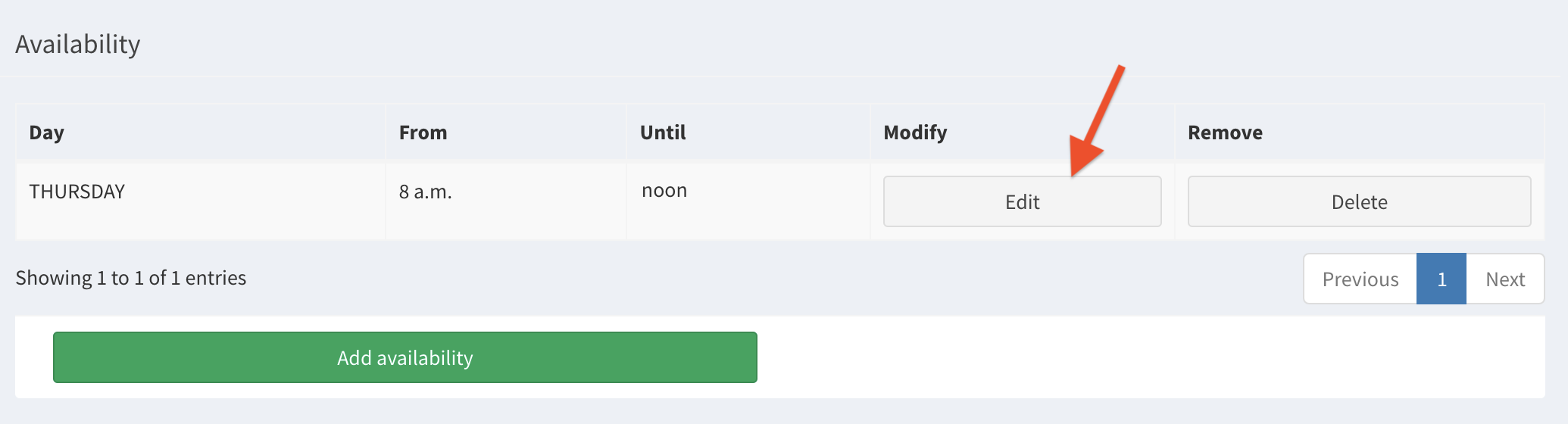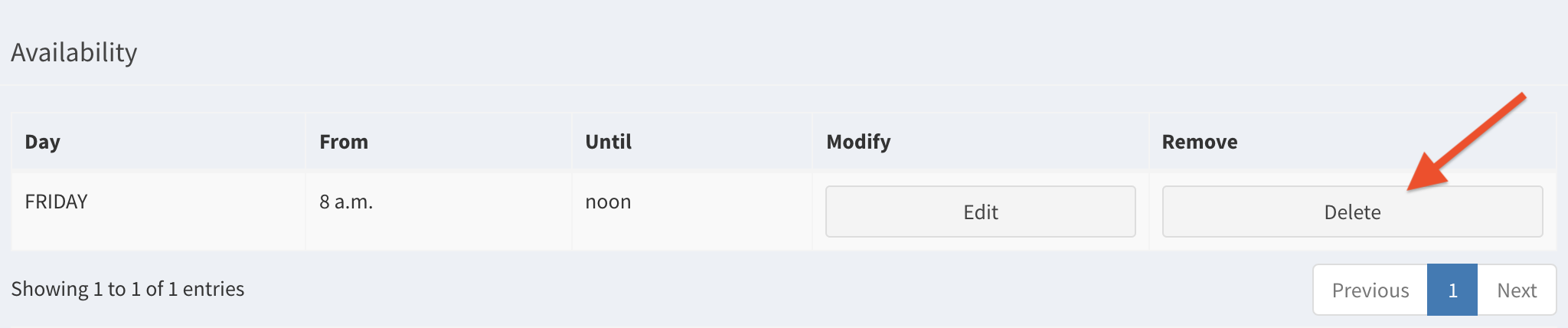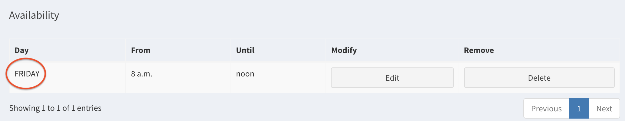 - Check if the availability was correctly changed (in this example: from Thursday to Friday).