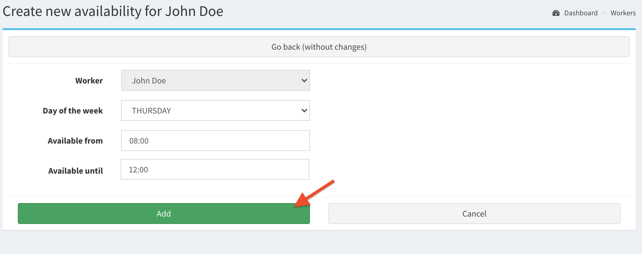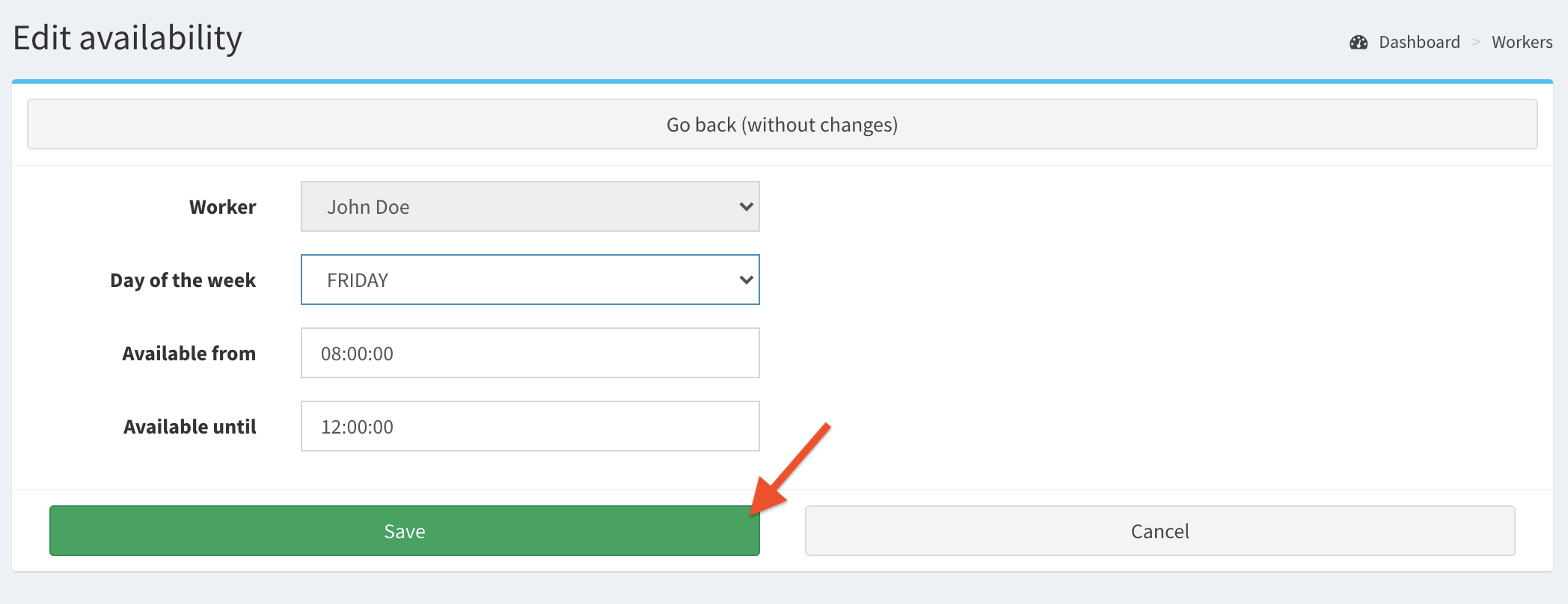 - To edit worker’s availability go to worker’s Details and click Edit button on the worker’s page.