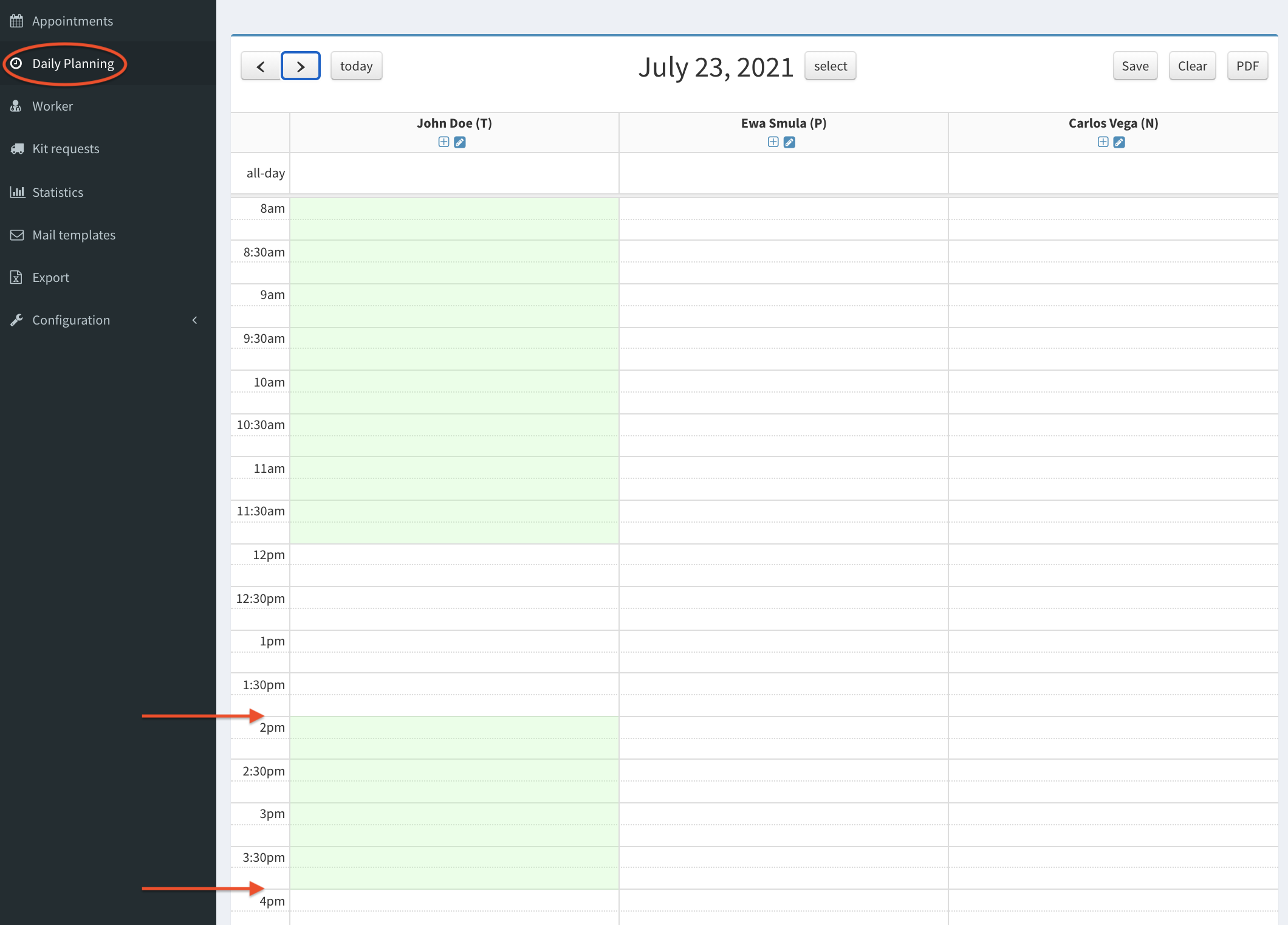 - Check if extra availability is added on worker’s page and Daily Planning: