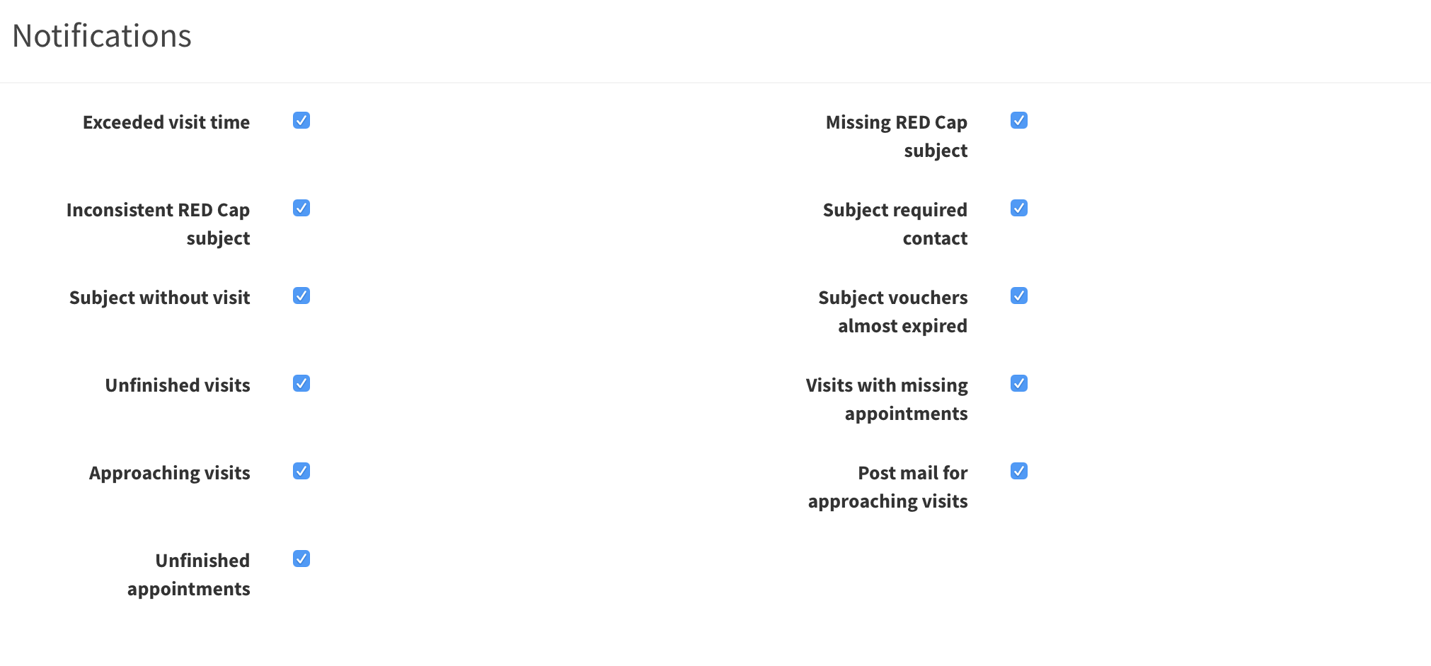 In SMASCH we keep only essential information of the subjects. The study data itself is stored in RedCap. To keep SMASCH records up to date, we compare SMASCH and RedCap contents to check for any inconsistencies. In this configuration section you can select fields which should be verified between the two platforms.