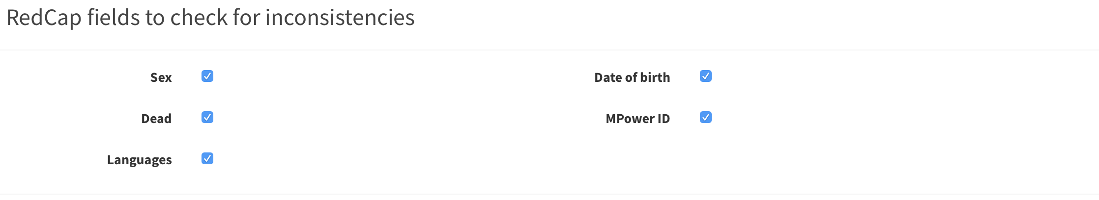 RedCap fields to check for inconsistencies#