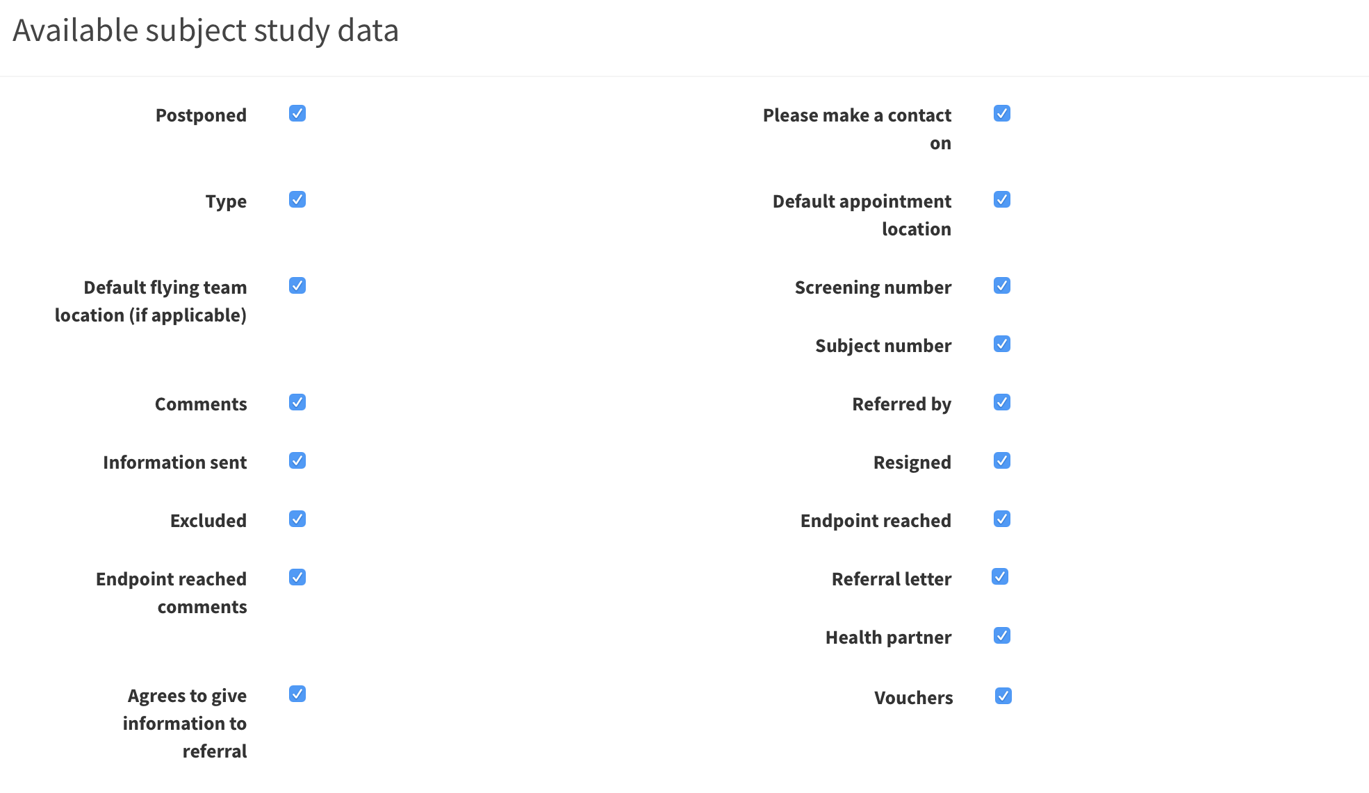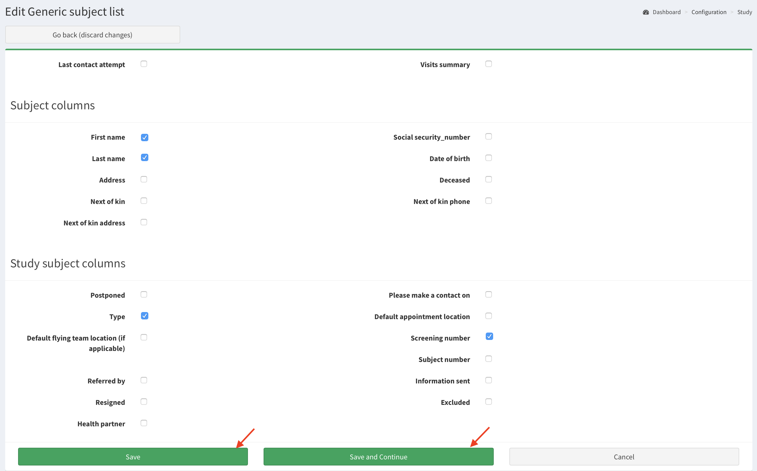At this Configuration study page you can customize what study information is displayed in SMASCH.
