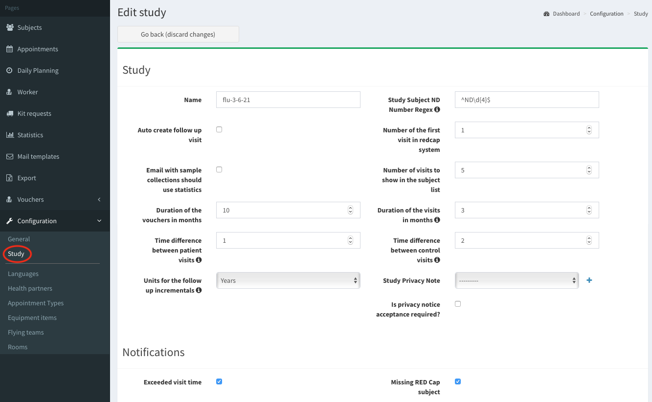 To start study configuration go to Study in Configuration in the left panel. Below Edit study page will be displayed.