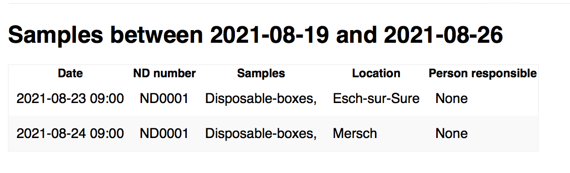 - If the checkbox is unchecked, the kit request email contains exactly the information you find in kit request page (e.g. date, location, subject number). The aim of this email is to provide the details of the samples which will be taken during the upcoming appointments. Also, the email is sent automatically, with the frequency configured in general configuration.