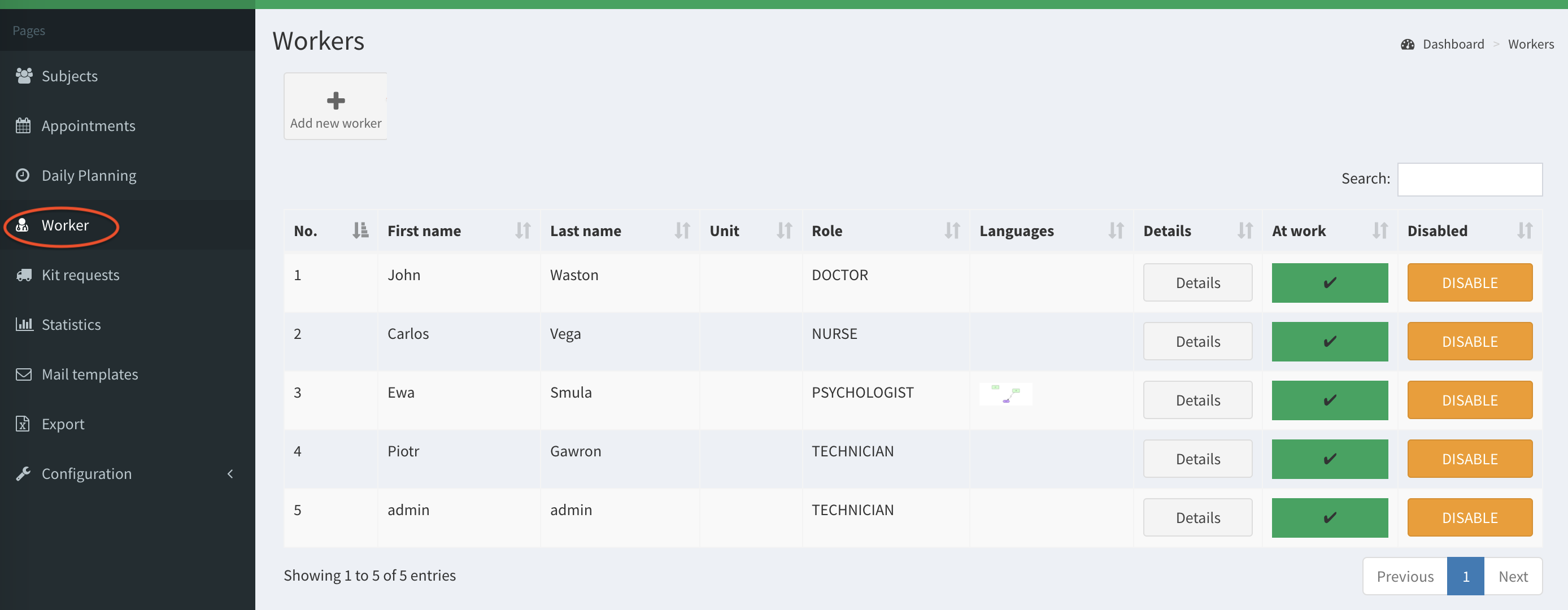 The worker can create an appointment only for the locations assigned to her/him. Moreover, in the appointments calendar view, the worker sees only appointments from her/his locations.