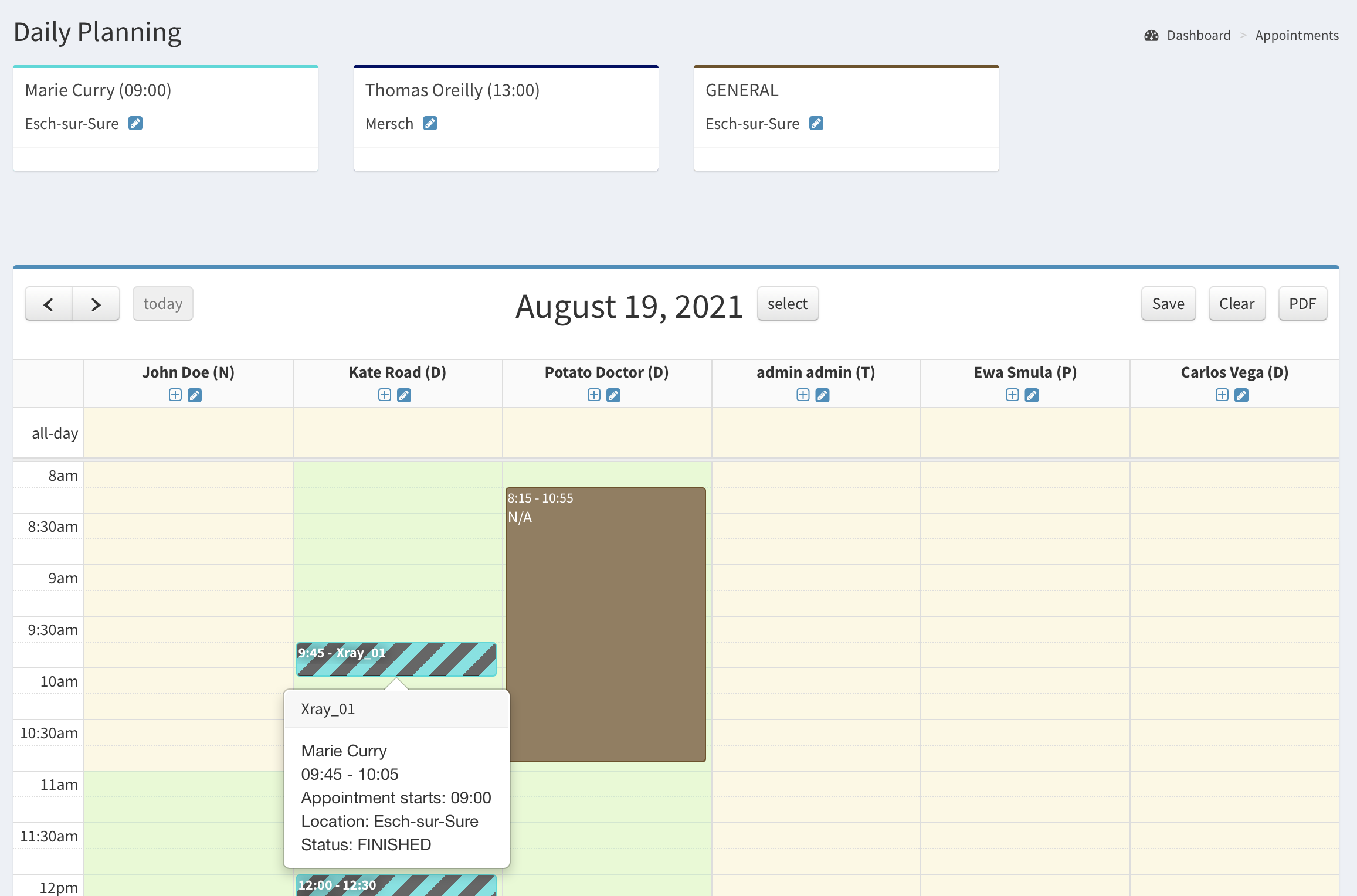 - Clear: removes all appointments from the Daily Planning. Click Save button to preserve that change.
