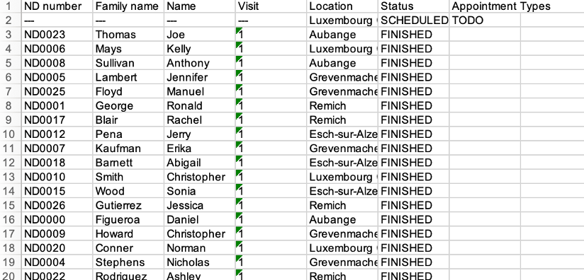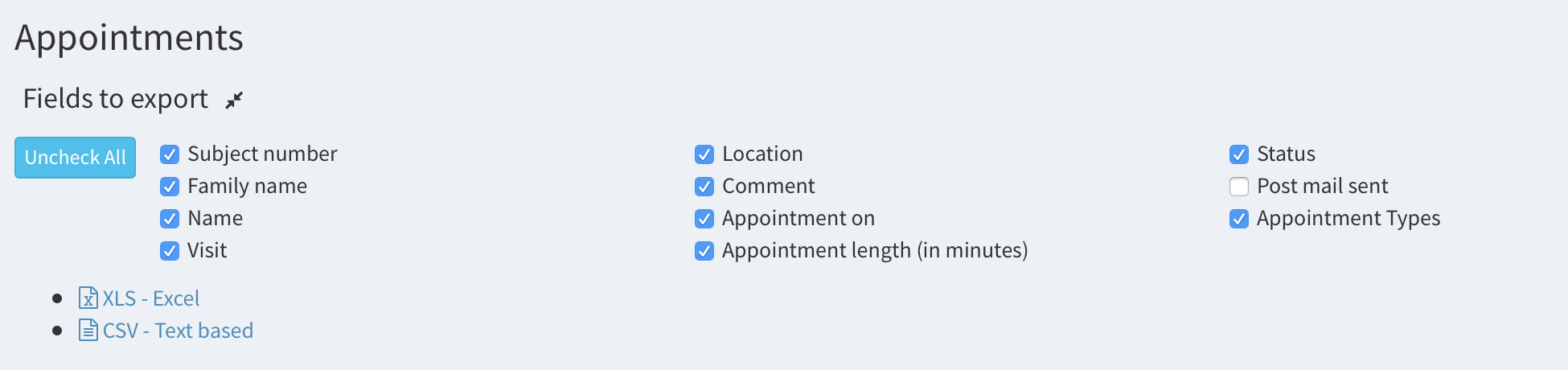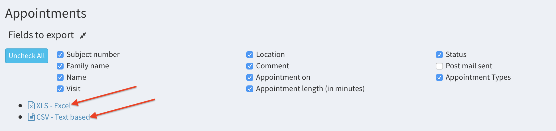 Export the details of the appointments#