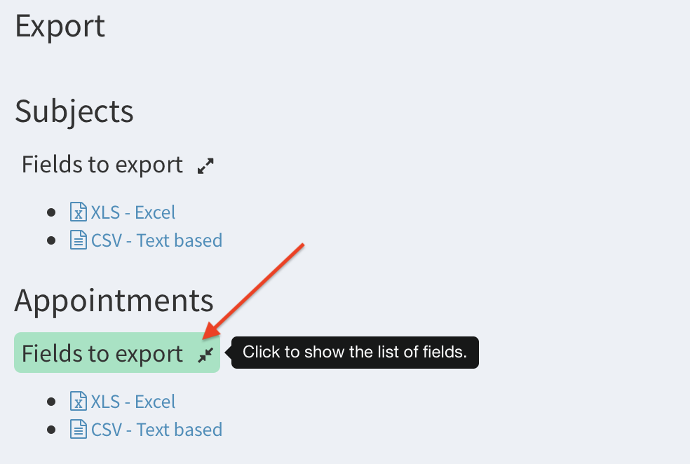 - Click on Fields to export this to show the list of available information.