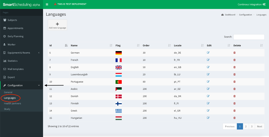 Order: describes the order in which languages are displayed in drop down menu (e.g. Default language for document generation in Add subject.)