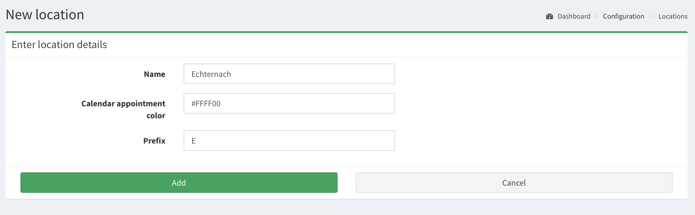- Fill in the form and click Add.