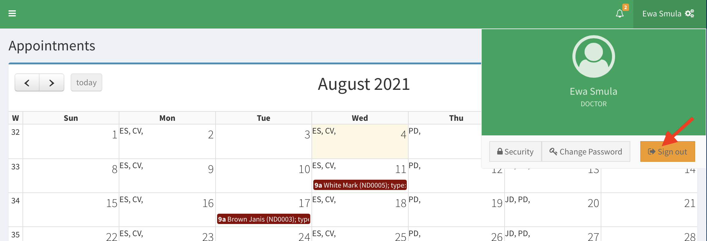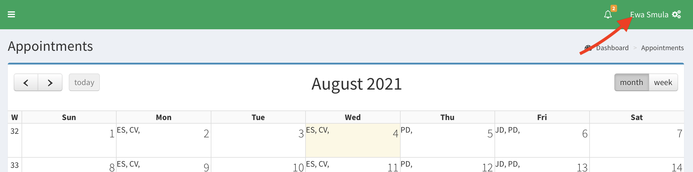 - To logout from Smart Scheduling, you need to click on your username in the top right corner.