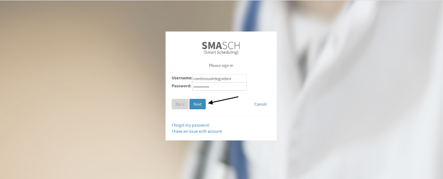 To login to the Smart Scheduling, you need to have an account in Smasch. After providing your credentials if Two-Factor Authentication is enabled you will be asked to authenticate your account, with for example using Google Authenticator app.