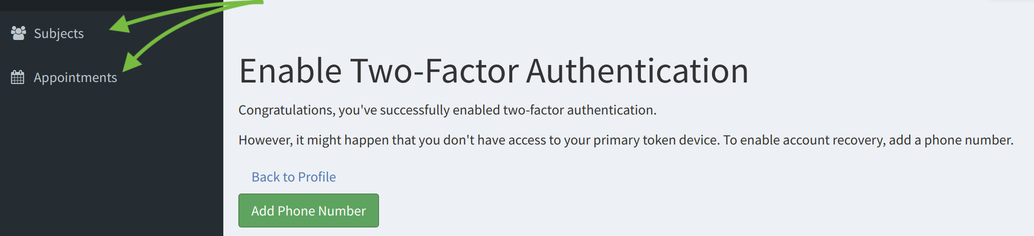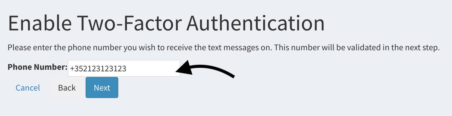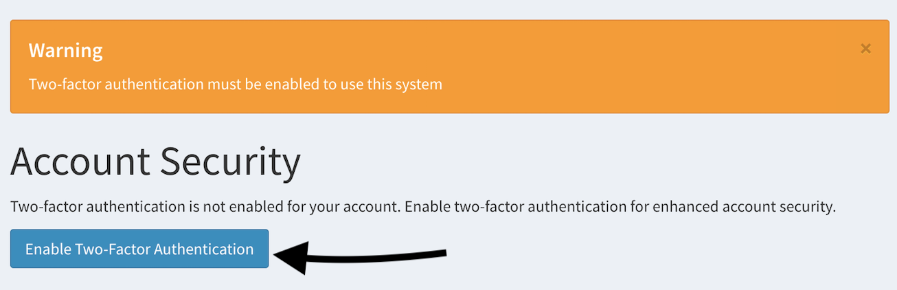 - Next step is to authenticate your account with your smartphone. This will happen only if Two-Factor Authentication is enforced in Smasch. To start, click on Enable Two-Factor Authentication button.