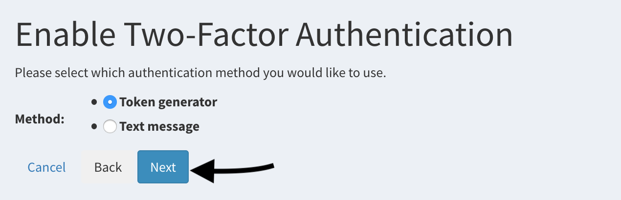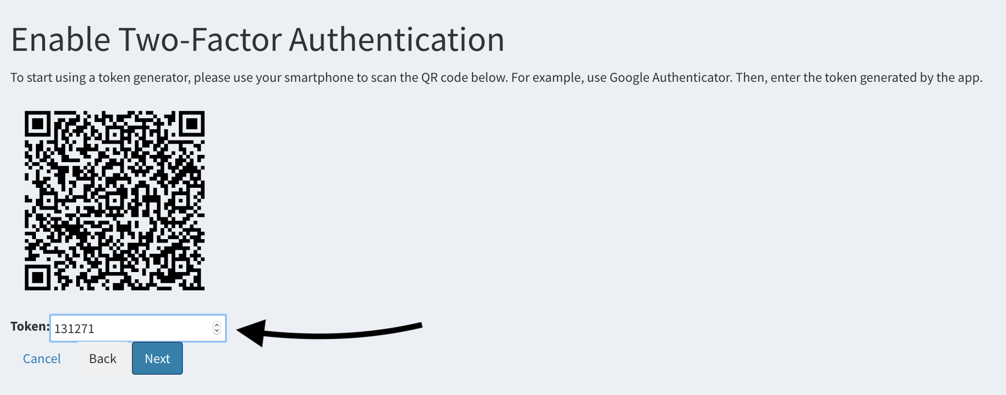 - Token generator - choose Token generator and click Next button. Now, open the Google Authenticator app on your smartphone and scan QR code, then input the generated token (6 digits) into field Token,then click Next.