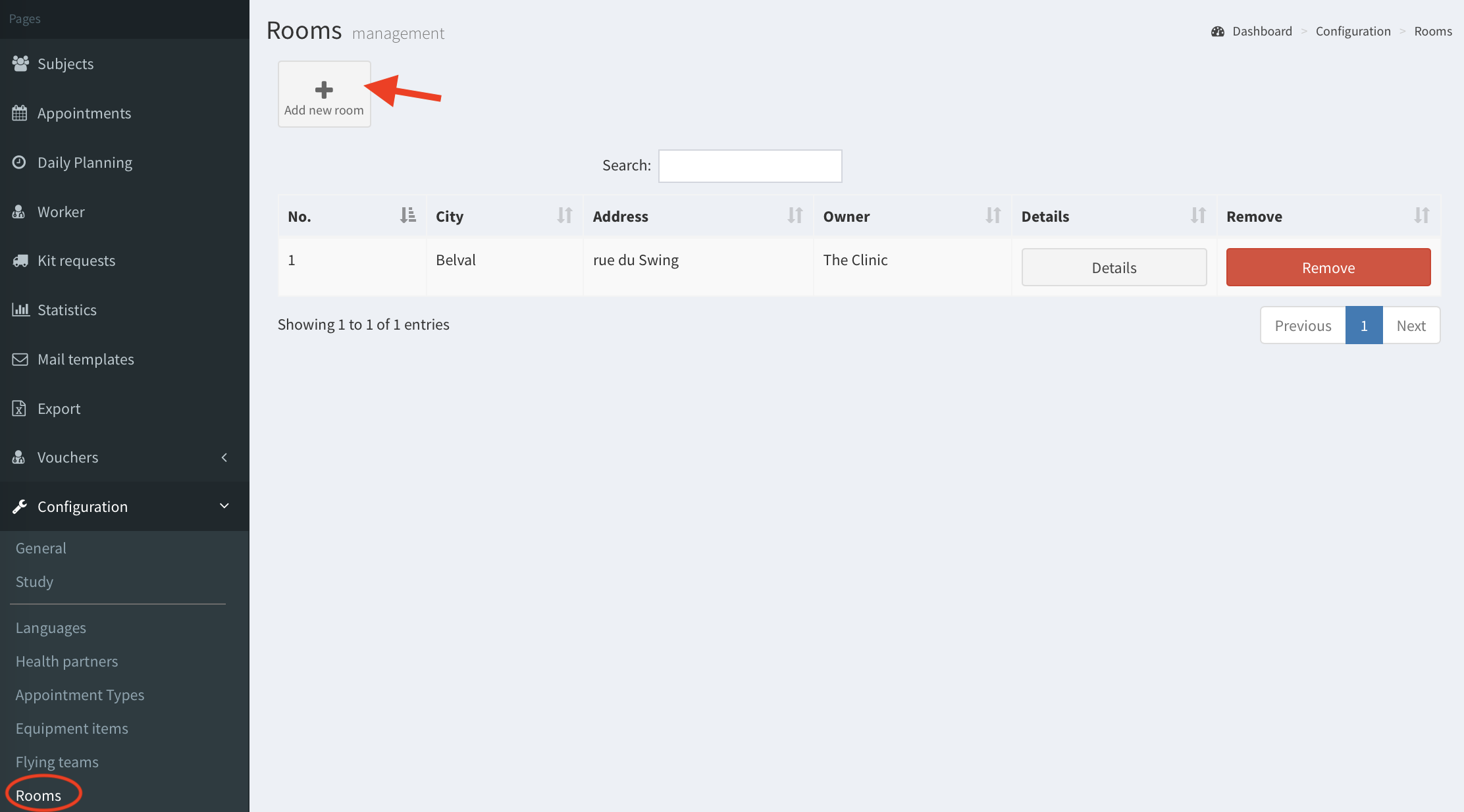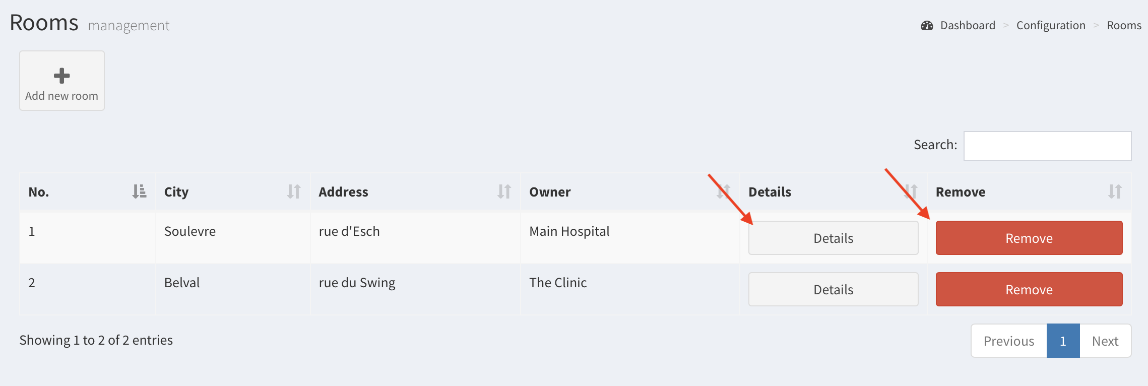 - After clicking Save the room is added. You can edit or delete it with Details and Removes buttons.