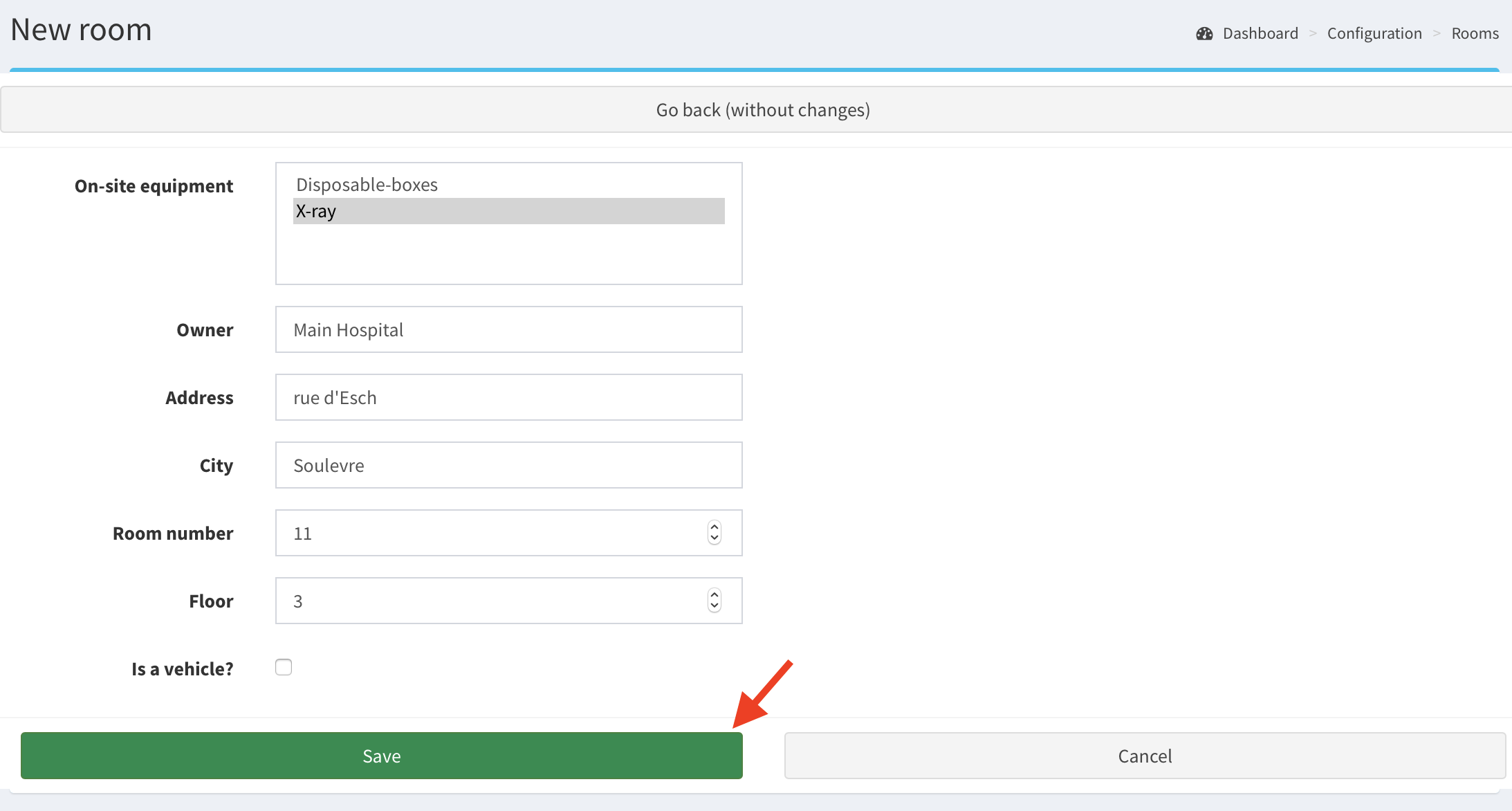 - Go to Rooms in the left panel and click Add new room button.