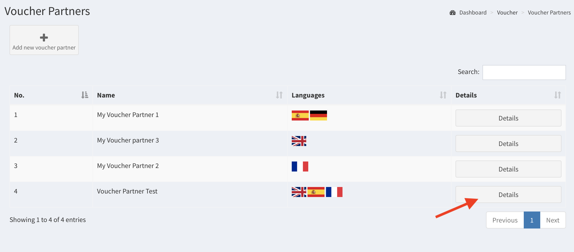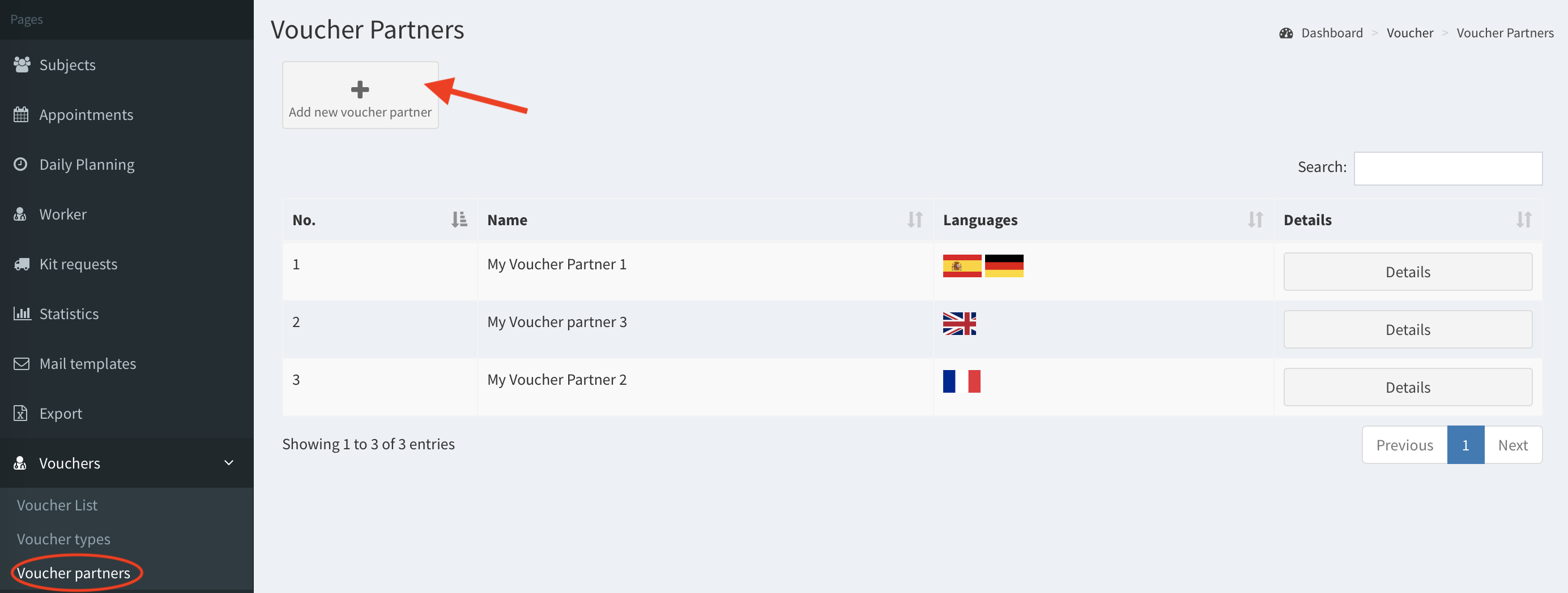 - Go to Voucher partners (subcategory of Vouchers) in the left panel. Then, click Add new voucher partner button.