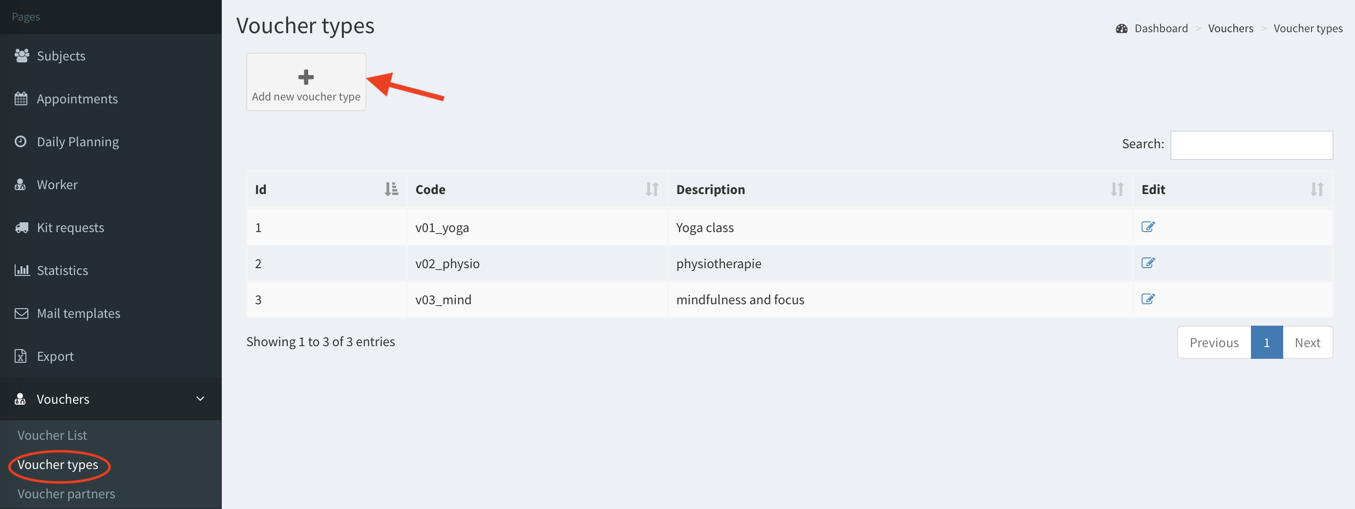 The partner accepts the vouchers concerning different activities supporting patient’s treatment. Any patient can attend free of charge these activities in the health institutes or medical cabinets. The same voucher type (i.e. memory and focus improvement class) can be issued by an individual voucher partners. The voucher type has to be configured in SMASCH in turn to create a voucher for a subject.