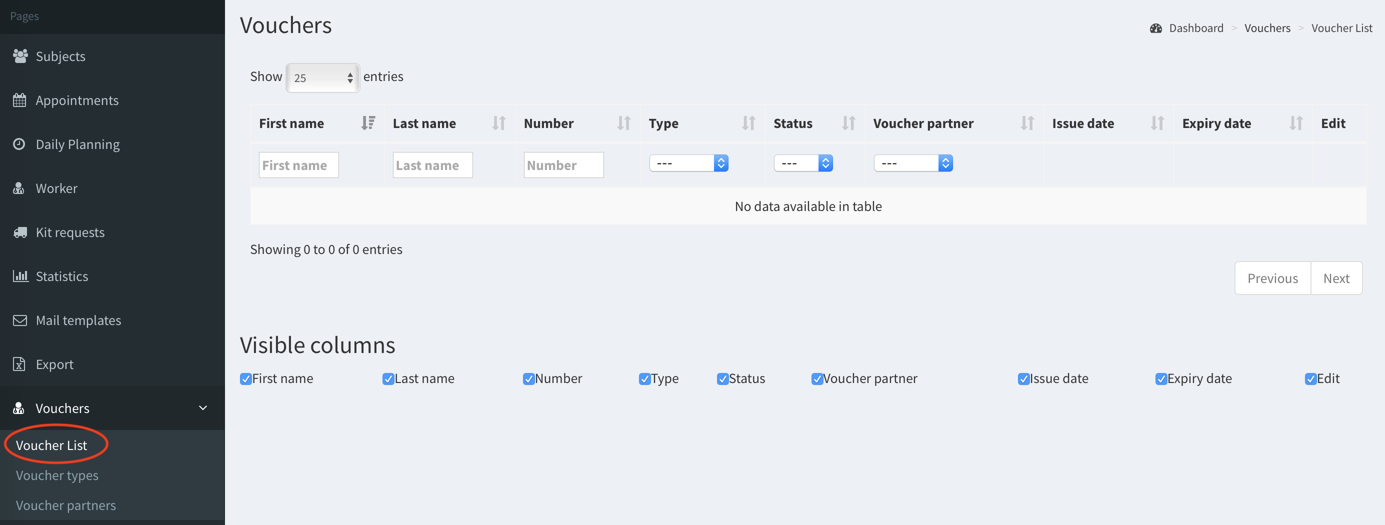 The vouchers are given to the patients to enhance their treatment with the activities to improve their focus and memory which are impaired due to the disease. The patients can attend some specialistic visits or classes (i.e. yoga, memory and focus improvement class, physiotherapy). These activities are part of treatment and with the voucher they are free of charge. Once the voucher is created in SMASCH, it can be printed and given to a patient. Therefore, monitoring the vouchers status (if voucher is newly issued, currently in use, or has expired) is important. The vouchers cannot be removed from SMASCH, they can only receive status Removed. To add a new voucher, the voucher partners and vouchers types have to be defined in SMASCH.