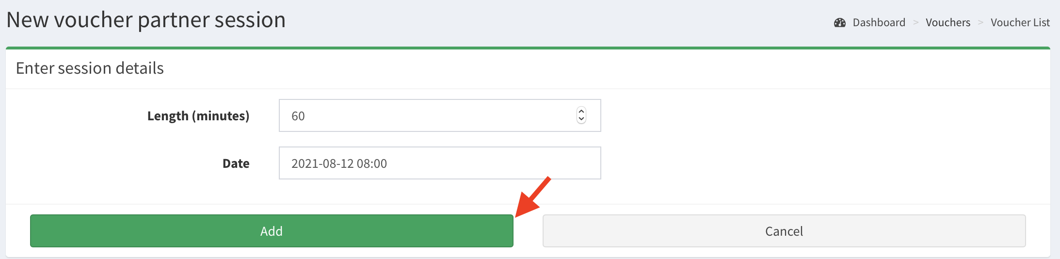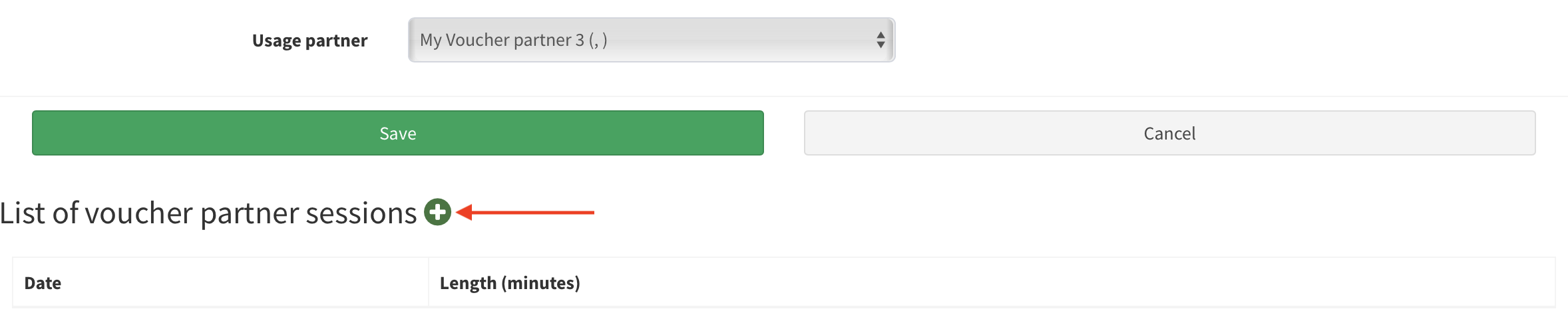 In Edit voucher page there is also section List of voucher partner sessions. This allows you to monitor the voucher’s usage. For example, if there is a voucher for two hours long (image below), the patient can take two one-hour long sessions or four 30 minutes sessions. Each time patient will attend to the session it should be inputted in the list.